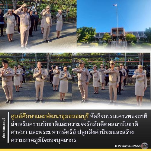 เวลา 08.00 น. ณ บริเวณด้านหน้าเสาธง อาคารอำนวยการ ศูนย์ศึกษาและพัฒนาชุมชนชลบุรี