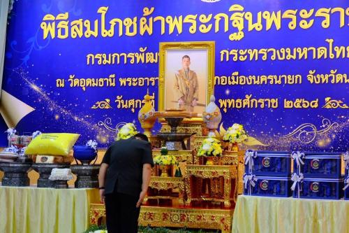 มอบหมายให้นายสามารถ สุวรรณมณี รองอธิบดีกรมการพัฒนาชุมชน เป็นประธานในพิธีสมโภชผ้าพระกฐินพระราชทานโดยมีคณะผู้บริหาร และข้าราชการกรมการพัฒนาชุมชนส่วนกลางและส่วนภูมิภาคจากจังหวัดต่าง ๆ รวมทั้งพี่น้องประชาชนผู้มีจิตศรัทธาเข้าร่วมพิธีฯ ณ วัดอุดมธานี ตำบลบ้านใหญ่ อำเภอเมืองนครนายก จังหวัดนครนายก ทั้งนี้พิธีถวายผ้าพระกฐินฯ จะมีขึ้นในวันพรุ่งนี้ วันที่ 1 พฤศจิกายน 2568 เวลา 10.00 น.