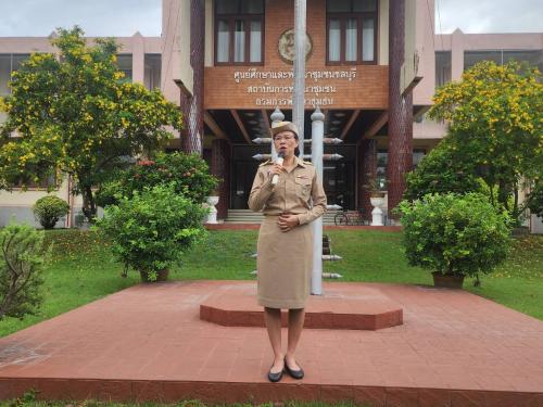 ศพช.ชลบุรี จัดกิจกรรมเคารพธงชาติ ส่งเสริมความรักชาติและความจงรักภักดีต่อสถาบันชาติ ศาสนา และพระมหากษัตริย์ ปลูกฝังค่านิยมและสร้างความภาคภูมิใจของบุคลากร