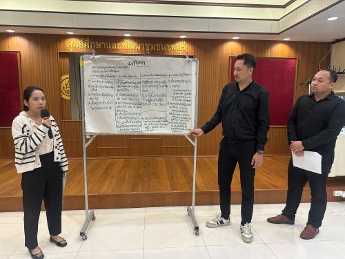 ในการนี้กลุ่มเป้าหมายได้แบ่งกลุ่มร่วมแลกเปลี่ยนความคิดเห็น สรุปผลการดำเนินงาน ภายใต้หัวข้อ ดังนี้