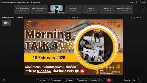 นายสยาม ศิริมงคล อธิบดีกรมการพัฒนาชุมชน มอบหมายให้ นายสงัด พืชพันธุ์ หัวหน้าผู้ตรวจราชการกรม เป็นประธานการประชุมหารือข้อราชการรายสัปดาห์ (Morning Talk) ครั้งที่ 4/2569 พร้อมด้วยคณะผู้บริหารกรมการพัฒนาชุมชน เข้าร่วมการประชุมฯ ในรูปแบบ onsite และ online ผ่านระบบ Cisco Webex Meeting