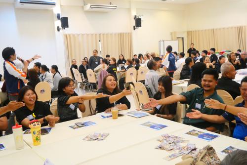 - แบ่งกลุ่มฝึกปฏิบัติ หัวข้อวิชา “การวางแผนจัดการเงิน” โดย นายชัยพร นาคเปลื้อง ผู้จัดการอาวุโส พร้อมด้วยทีมวิทยากรจากธนาคารไทยเครดิต ร่วมกับทีมวิทยากรศูนย์ศึกษาและพัฒนาชุมชนชลบุรี