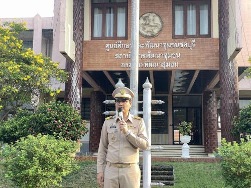 วันจันทร์ที่ 16 กุมภาพันธ์ 2569 เวลา 08.00 น. ณ บริเวณด้านหน้าเสาธง อาคารอำนวยการ ศูนย์ศึกษาและพัฒนาชุมชนชลบุรี