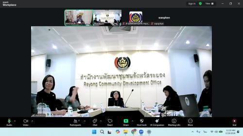 นางสาวมนทิรา เข็มทอง ผู้ตรวจราชการกรม ปฏิบัติหน้าที่ผู้อำนวยการศูนย์ศึกษาและพัฒนาชุมชนชลบุรี ตรวจติดตามผลการปฏิบัติราชการตามนโยบายรัฐบาล ภารกิจกระทรวงมหาดไทยและกรมการพัฒนาชุมชน ประจำเดือนกุมภาพันธ์ 2569 ของจังหวัดระยอง โดยมีนางสาวพุทธิมาลย์ เชียรพิมาย พัฒนาการจังหวัดระยอง พร้อมด้วยผู้อำนวยการกลุ่มงาน พัฒนาการอำเภอ และเจ้าหน้าที่ ได้นำเสนอข้อมูลการขับเคลื่อนการดำเนินงานตามประเด็นตรวจประจำเดือนกุมภาพันธ์ 2569 ดังนี้