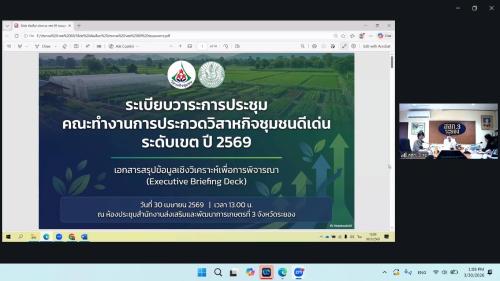นางสาวมนทิรา เข็มทอง ผู้ตรวจราชการกรม ปฏิบัติหน้าที่ ผู้อำนวยการศูนย์ศึกษาและพัฒนาชุมชนชลบุรี ร่วมการประชุมคณะทำงานประกวดวิสาหกิจชุมชนดีเด่น ระดับเขต ประจำปี 2569 ผ่านระบบออนไลน์