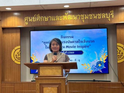 ในการนี้ นางสาวมนทิรา เข็มทอง ผู้ตรวจราชการกรม ปฏิบัติหน้าที่ผู้อำนวยการศูนย์ศึกษาและพัฒนาชุมชนชลบุรี ได้ให้ข้อคิดจากกิจกรรมดูหนังสร้างแรงบันดาลใจเชิงบวกในการทำงาน : Movie Inspire เป็นการใช้กระบวนการเรียนรู้แบบมีส่วนร่วม เพื่อให้บุคลากรได้ตกผลึกความคิด (Reflection) จากสิ่งที่ได้รับชมจากภาพยนต์ และเปลี่ยนความประทับใจให้กลายเป็นพลังในการปฏิบัติงานจิตอาสาและการช่วยเหลือสังคม ซึ่งเป็นหัวใจสำคัญของการทำงานพัฒนาชุมชนให้เกิดความยั่งยืนต่อไป
