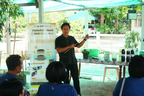 ฐานที่ 2 ฐานฅนรักษ์แม่ธรณี: ศึกษาการทำปุ๋ยหมักแบบไม่กลับกอง (สูตรวิศวกรรมแม่โจ้ 1) การทำน้ำหมักสมุนไพรเจ็ดรส และจุลินทรีย์จาวปลวก เพื่อเป็นการลดใช้สารเคมี สอดคล้องกับนโยบายการเป็นมิตรกับสิ่งแวดล้อม