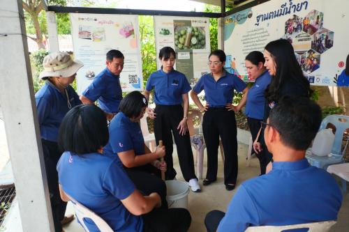 จากนั้น ได้นำคณะศึกษาดูงานลงพื้นที่ฐานเรียนรู้ และฝึกปฏิบัติจริง จำนวน 3 ฐานเรียนรู้ ได้แก่