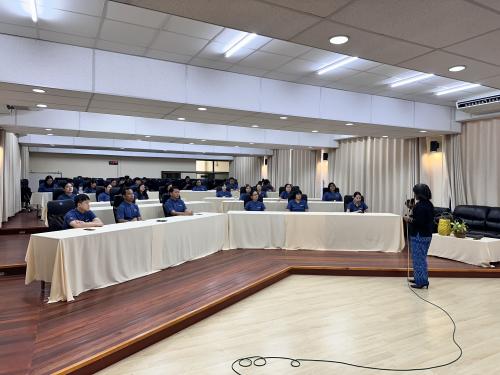 ในโอกาสนี้ นางสาวมนทิรา เข็มทอง ผู้ตรวจราชการกรม ให้เกียรติบรรยายพิเศษในหัวข้อ "การน้อมนำหลักปรัชญาของเศรษฐกิจพอเพียงสู่การปฏิบัติ" โดยเน้นย้ำการสร้างรากฐานที่เข้มแข็ง ผ่านทฤษฎี 3 ห่วง 2 เงื่อนไขและทฤษฎีบันได 9 ขั้น เพื่อสร้างความเข้าใจในแก่นแท้ของความพอเพียงที่สามารถนำไปปรับใช้ได้ ทั้งในการปฏิบัติราชการและการดำเนินชีวิต รวมถึงการแลกเปลี่ยนประสบการณ์การทำงานร่วมกับภาคีเครือข่าย เพื่อให้คณะศึกษาดูงาน สามารถนำแนวคิดไปต่อยอดในบริบทของงานส่งเสริมอุตสาหกรรมในพื้นที่ต่อไป