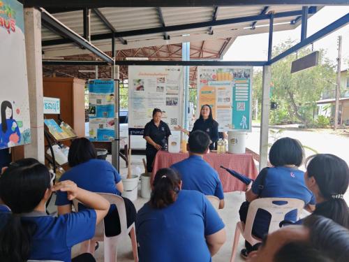 ฐานที่ 1 ฐานฅนมีน้ำยา: เรียนรู้ทักษะการพึ่งพาตนเองผ่านการทำน้ำยาล้างจานและผลิตภัณฑ์ทำความสะอาด เพื่อลดรายจ่ายในครัวเรือน และสอดคล้องกับมาตรฐานประหยัดพลังงาน และมาตรการลดภาระค่าครองชีพ