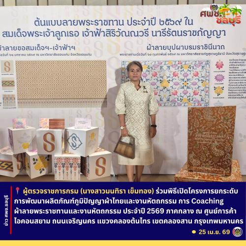 กรมการพัฒนาชุมชน ได้จัดกิจกรรมที่ 1 การ Coaching ผ้าลายพระราชทาน และงานหัตถกรรม ประจำปี 2569 “ผ้าลายขอสมเด็จฯ-เจ้าฟ้าฯ” และงานหัตถกรรมขึ้น เพื่อพัฒนาทักษะผู้ผลิต ผู้ประกอบการ OTOP ให้มีความรู้ความสามารถในการพัฒนาผลิตภัณฑ์ประเภทผ้าและงานหัตถกรรม ให้มีคุณภาพเป็นที่ยอมรับ และสร้างรายได้เพิ่มให้กับชุมชน โดยน้อมนำแนวทางพระราชดำริสมเด็จพระเจ้าลูกเธอ เจ้าฟ้าสิริวัณณวรีนารีรัตนราชกัญญา มาต่อยอดภูมิปัญญาท้องถิ่น องค์ความรู้ และเทคโนโลยีสมัยใหม่ ดำเนินการ 4 จุด ได้แก่ สงขลา ขอนแก่น กรุงเทพมหานคร และเชียงใหม่ สำหรับกลุ่มเป้าหมายในวันนี้ประกอบด้วยกลุ่มผู้ผลิต ผู้ประกอบการ OTOP ในพื้นที่ 25 จังหวัดภาคกลาง และจังหวัดอุทัยธานี และสมาชิกศิลปาชีพ โดยกลุ่มเป้าหมายดังกล่าว จะเข้ารับการอบรมเพื่อเตรียมความพร้อมในการประกวดผ้าลายพระราชทาน “ผ้าลายสิริราชพัสตราภรณ์” และงานหัตถกรรม ในระดับภาค และระดับประเทศ ต่อไป
