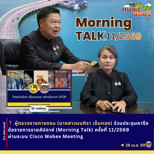 ศพช.ชลบุรีร่วมประชุมหารือข้อราชการรายสัปดาห์ (Morning Talk) ครั้งที่ 11/2569 ผ่านระบบ Cisco Webex Meeting