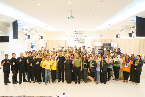 - การเข้าแถวเคารพธงชาติ และ กิจกรรมกลุ่มสัมพันธ์ แบ่งกลุ่ม รับผ้าสี และสร้างข้อตกลงในการอยู่ร่วมกัน โดยทีมงานศพช.ชลบุรี